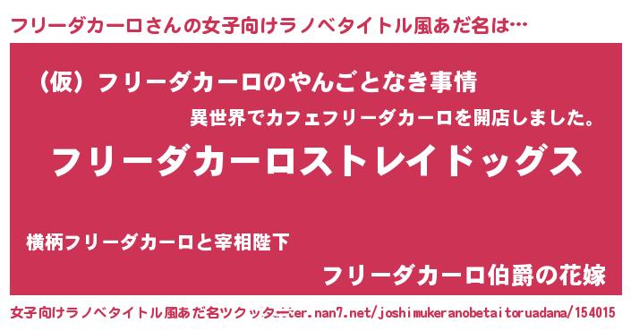 | 男性向けラノベタイトル風あだ名 | 『Re:フリーダカーロから始める異世界生活』 |