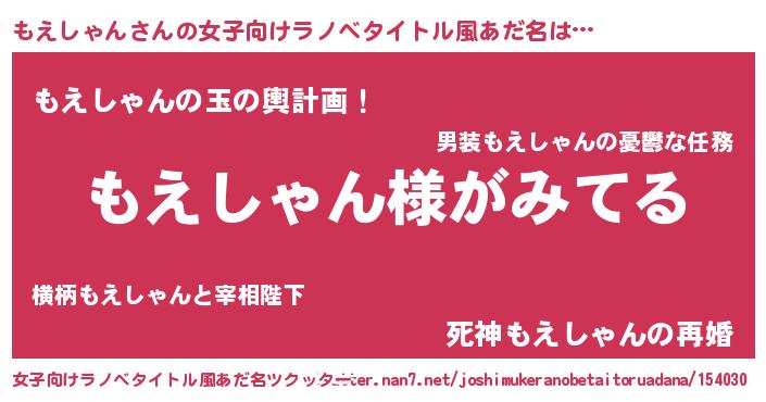 | ヒーロー風カッコイイあだ名 | 『幻影騎士モエ』『愛の使者もえしゃん』 |