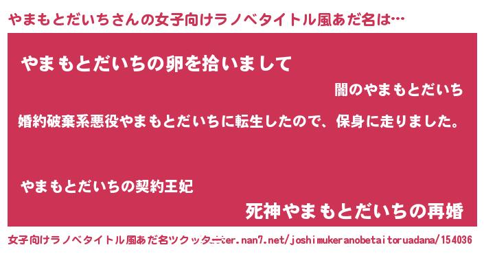 | 男性向けラノベタイトル風あだ名 | 『転生したらやまもとだいちだった件』 |