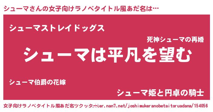 | 胡散臭い通販商品みたいなあだ名 | 『信頼と実績のペンダント…その名も「シューマ」』 |