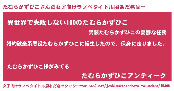 | 男性向けラノベタイトル風あだ名 | 『転生したらたむらかずひこだった件』 |
