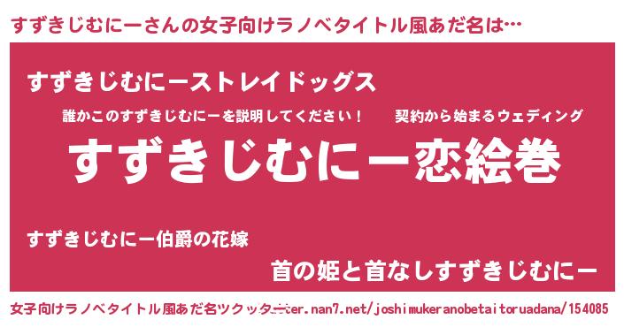 | 男性向けラノベタイトル風あだ名 | 『おまえをオタクにしてやるから、俺をすずきじむにーにしてくれ! 』 |