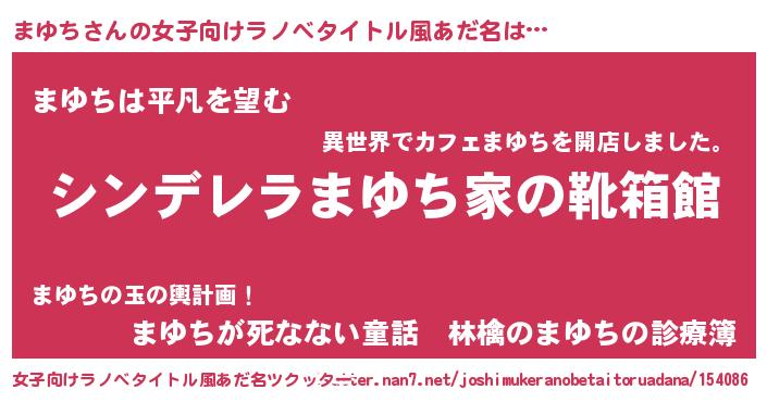 | 胡散臭い通販商品みたいなあだ名 | 『信頼と実績のネックレス…その名も「まゆち」』 |