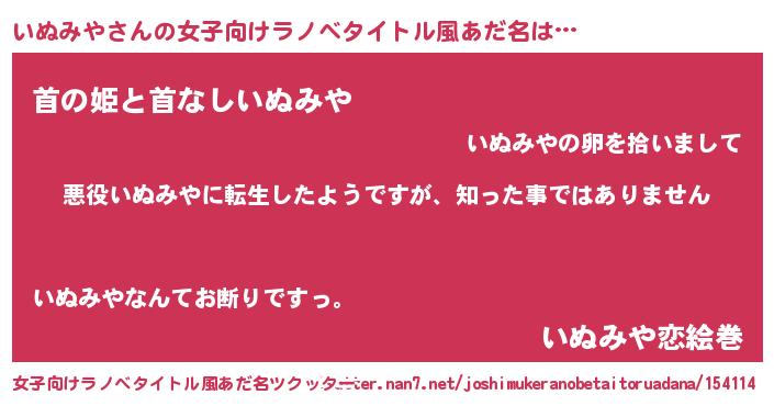 | 男性向けラノベタイトル風あだ名 | 『この素晴らしい世界にいぬみやを!』 |