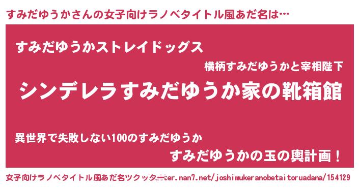 | ヘコむあだ名 | 『すみだゆうか(笑)』『すみにゅー』 |