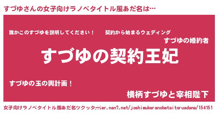 | 男性向けラノベタイトル風あだ名 | 『誰もが恐れるあのすづゆが、ぼくの専属メイドになるようです。』 |