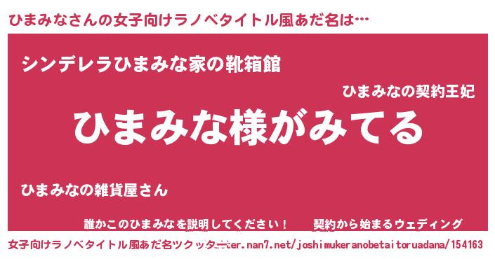 | 男性向けラノベタイトル風あだ名 | 『ひまみなの嫁は女の子じゃないと思った?』 |