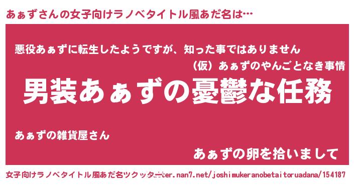 | ヒーロー風カッコイイあだ名 | 『仮面アァダー』『炎刃騎士アァ』 |