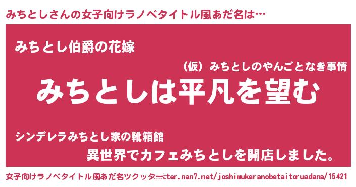| 胡散臭い通販商品みたいなあだ名 | 『信頼と実績のネックレス…その名も「みちとし」』 |