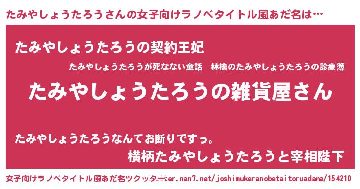 | 意味不明あだ名 | 『たみやしょうたろうフォーエバー』 |