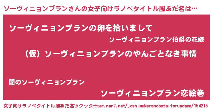 | 男性向けラノベタイトル風あだ名 | 『ソーヴィニョンブランの憂鬱』 |