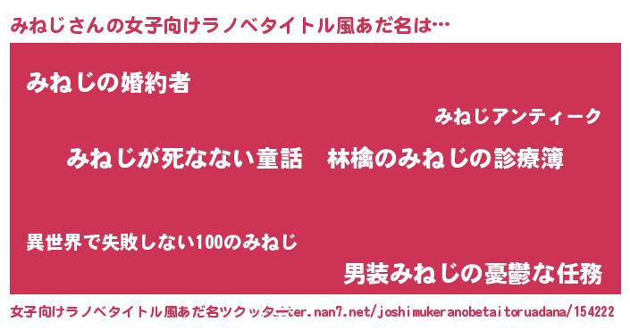 | 男性向けラノベタイトル風あだ名 | 『魔弾の王とみねじ』 |