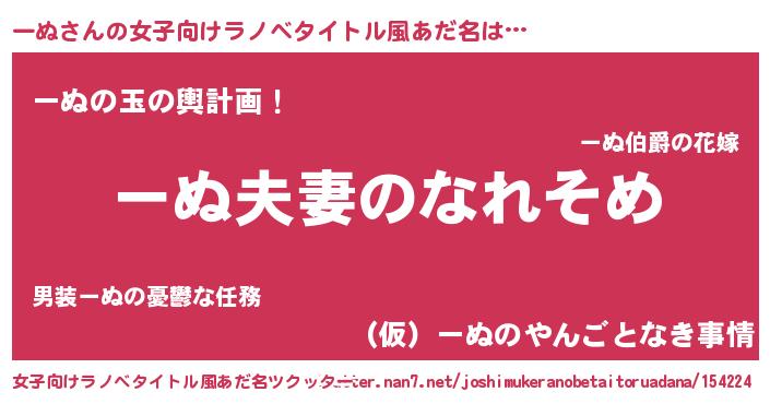 | 男性向けラノベタイトル風あだ名 | 『おまえをオタクにしてやるから、俺をーぬにしてくれ! 』 |
