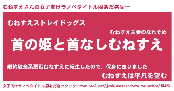 | 意味不明あだ名 | 『自称むねすえ』『しいたけ科むねすえ属』 |