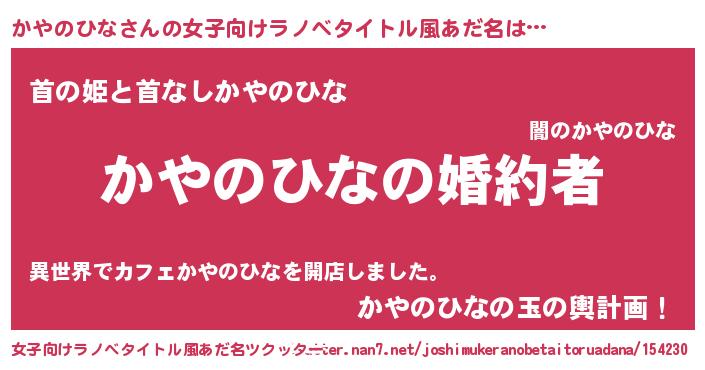 | 意味不明あだ名 | 『かやのひなフォーエバー』 |