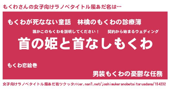 | 男性向けラノベタイトル風あだ名 | 『はたらくもくわさま!』 |