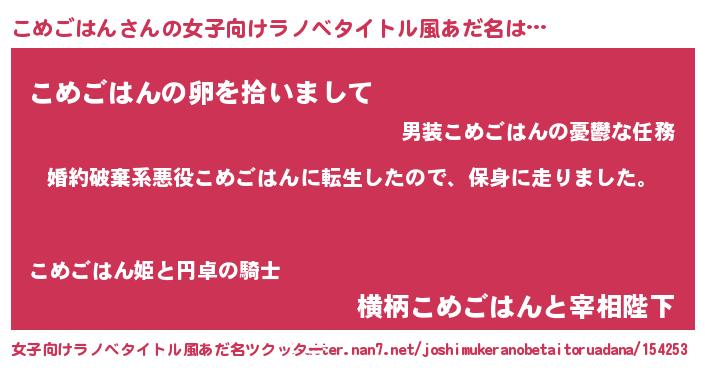 | 欧米人風あだ名 | 『トリンドルこめごはん』 |