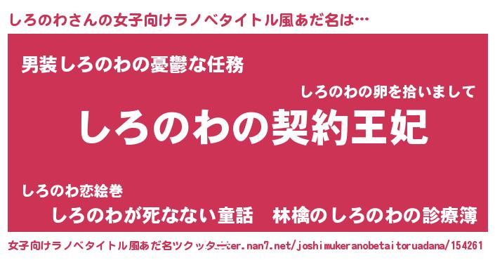 | 男性向けラノベタイトル風あだ名 | 『しろのわという概念が存在しない退屈な世界 』 |
