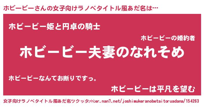 | ヒーロー風カッコイイあだ名 | 『友情の使者ホビービー』『暗黒騎士ホビ』 |