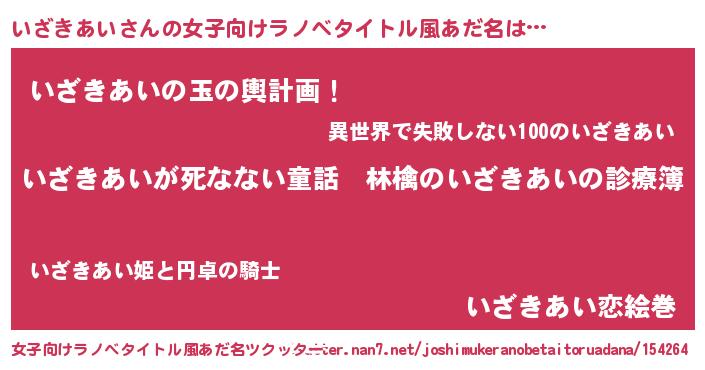 | ヒーロー風カッコイイあだ名 | 『仮面イザダー』『慈愛の使者いざきあい』 |