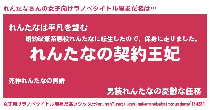 | 胡散臭い通販商品みたいなあだ名 | 『来世でも幸せになれる水素水…その名も「れんたな」』 |