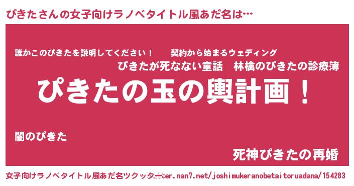 | ファンタジー風あだ名 | 『ユリピキヴァット』『ピキフェル』 |