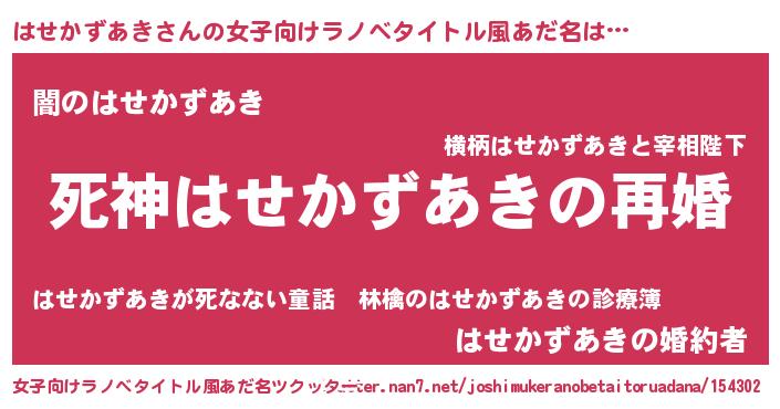 | 男性向けラノベタイトル風あだ名 | 『ノーゲーム・ノーハセカズアキ』 |