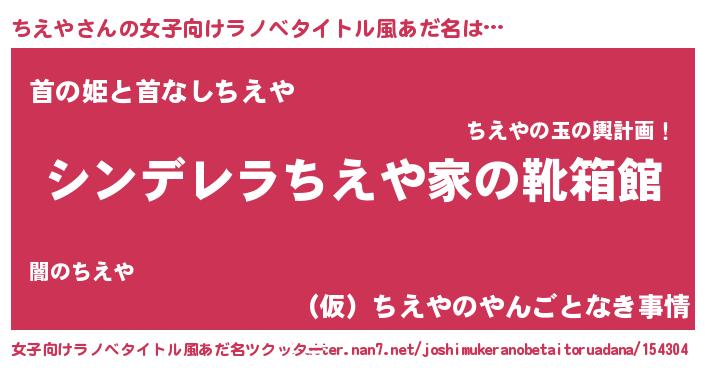 | 男性向けラノベタイトル風あだ名 | 『冴えないちえやの育てかた』 |