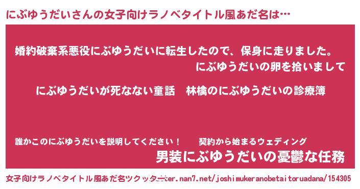 | 男性向けラノベタイトル風あだ名 | 『魔弾の王とにぶゆうだい』 |