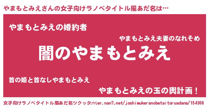 | 男性向けラノベタイトル風あだ名 | 『Re:やまもとみえから始める異世界生活』 |