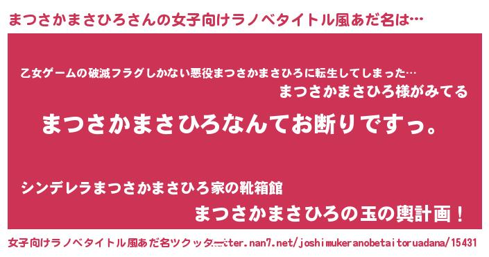 | 意味不明あだ名 | 『自称まつさかまさひろ』 |