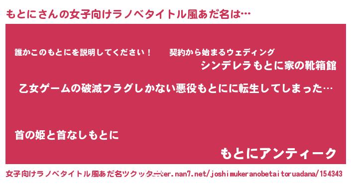 | 胡散臭い通販商品みたいなあだ名 | 『世界中を虜にした100年もののヴィンテージワイン…その名も「もとに」』 |