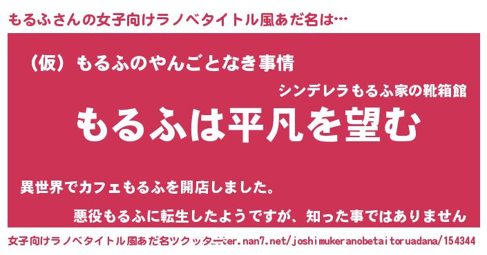 | 意味不明あだ名 | 『とにかく怪しいもるふ』『自称もるふ』 |