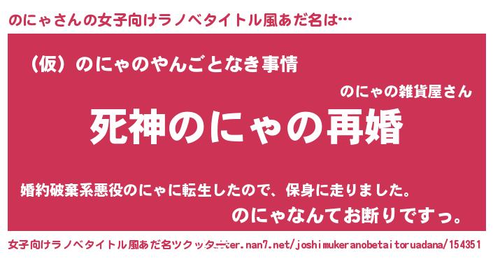 | 男性向けラノベタイトル風あだ名 | 『ノーゲーム・ノーノニャ』 |