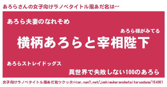 | ヘコむあだ名 | 『あろら(笑)』『あろお』『レバニラ』 |