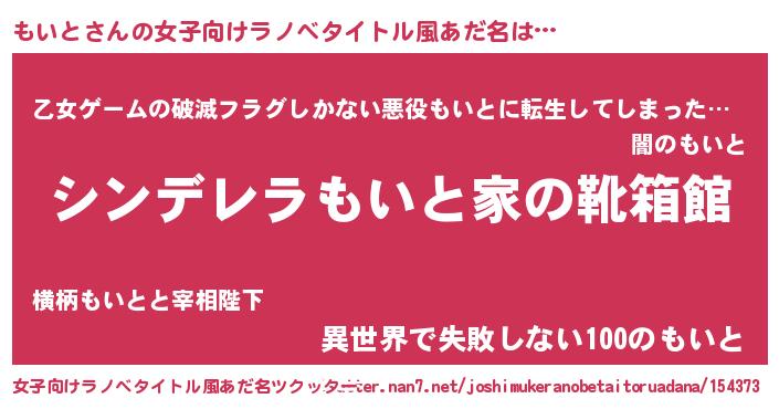 | 男性向けラノベタイトル風あだ名 | 『緋弾のモイト』『魔弾の王ともいと』 |