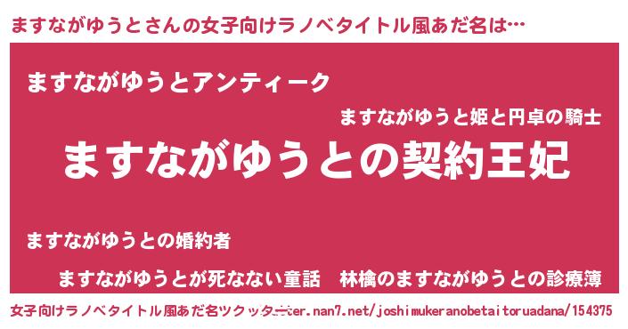 | 胡散臭い通販商品みたいなあだ名 | 『来世でも幸せになれる健康食品…その名も「ますながゆうと」』 |