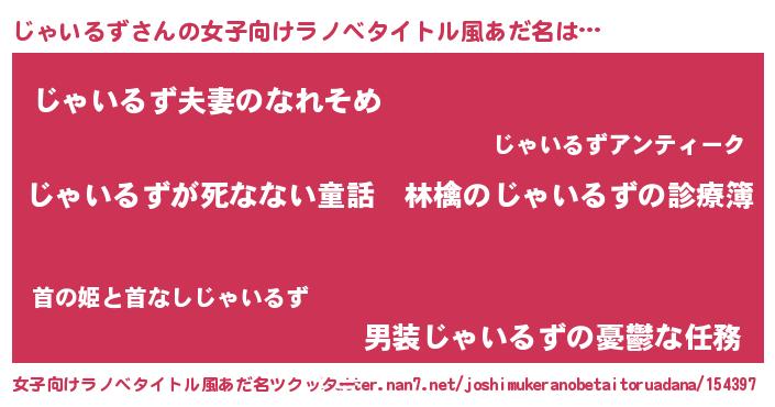 | 男性向けラノベタイトル風あだ名 | 『魔弾の王とじゃいるず』 |