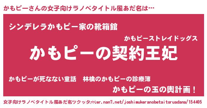 | 胡散臭い通販商品みたいなあだ名 | 『来世でも幸せになれる健康食品…その名も「かもピー」』 |