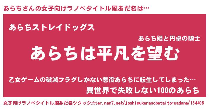 | ヒーロー風カッコイイあだ名 | 『暗黒騎士アラ』『究極戦士アラチ』 |