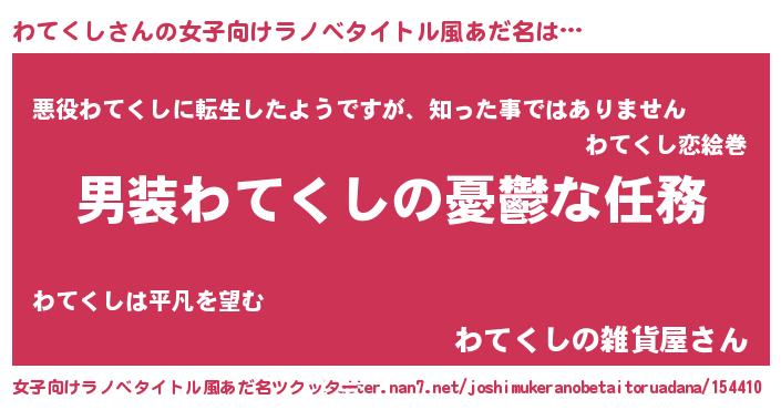 | ヒーロー風カッコイイあだ名 | 『仮面ワテダー』『ウルトラわてくしマン』 |