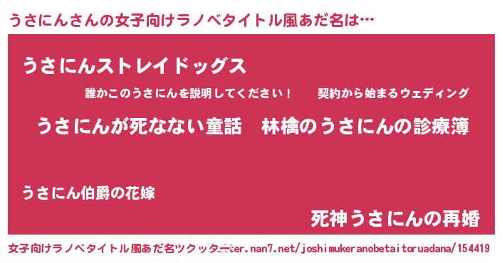 | ヒーロー風カッコイイあだ名 | 『仮面ウサダー』『最強戦士ウサニン』 |