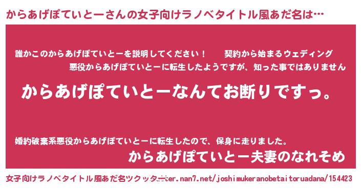 | 意味不明あだ名 | 『自称からあげぽていとー』 |