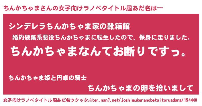 | 男性向けラノベタイトル風あだ名 | 『魔法科高校のちんかちゃま』 |