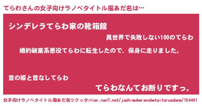 | 男性向けラノベタイトル風あだ名 | 『テラワスレイヤー』『緋弾のテラワ』 |