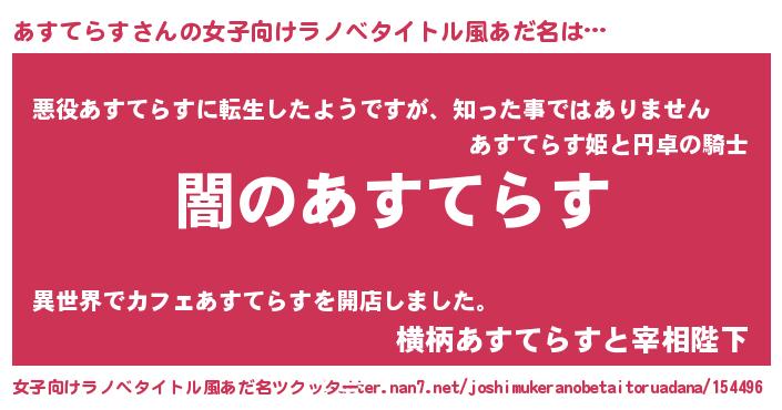 | 男性向けラノベタイトル風あだ名 | 『Re:あすてらすから始める異世界生活』 |