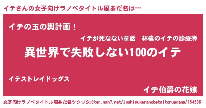 | 男性向けラノベタイトル風あだ名 | 『イテという概念が存在しない退屈な世界 』 |