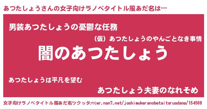 | 意味不明あだ名 | 『自称あつたしょう』 |