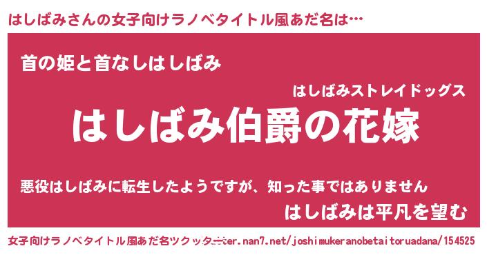 | ファンタジー風あだ名 | 『エターナルハシバミー』『ゼハシトゥ』 |
