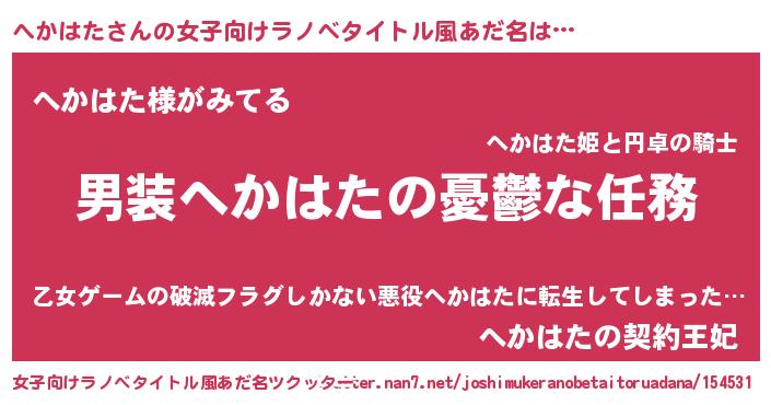 | 男性向けラノベタイトル風あだ名 | 『うちのへかはたが世界を掌握している!』 |